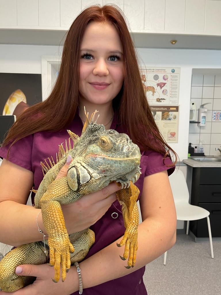 Auch unsere Tiermedizinischen Fachangestellten haben eine Händchen für Hunde, Katzen, Exoten, Heimtiere und Vögel. Unsere langjährige Helferinnen Janine und Azubi Lisa sind neben großer Empathie und Zuneigung zu Hund und Katze vertraut mit dem Handling und der Haltung von diversen Reptilien und Amphibien. Durch die Stationäre Betreuung dieser Patienten sind sie vertraut und routiniert im Umgang mit Schlangen, Echsen, Varanen und Fröschen und wissen über Ihre Haltungs- und Ernährungsweise Bescheid. Nicht in vielen Tierarztpraxen wir die Ankunft von Riesenschlangen mit so viel Freude aufgenommen wie bei uns. Eine abwechslungsreiche Arbeit und Vielfalt bestimmen unseren Alltag und darüber sind wir alle glücklich und freuen uns auch selten gehaltenen Arten eine Betreuung anbieten zu können.